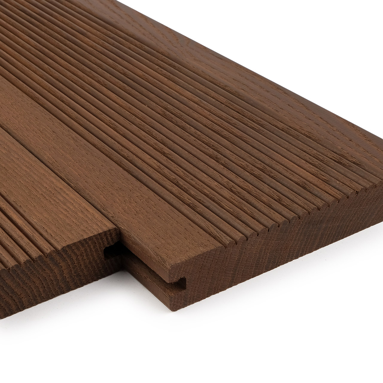 Збудуйте своє ідеальне приміщення на відкритому повітрі з терасною дошкою Bauwood BT-1 з термоясена. Ця дошка не лише витончено виглядає, але й має надзвичайно високу якість, що гарантує тривалий та безпечний термін експлуатації.