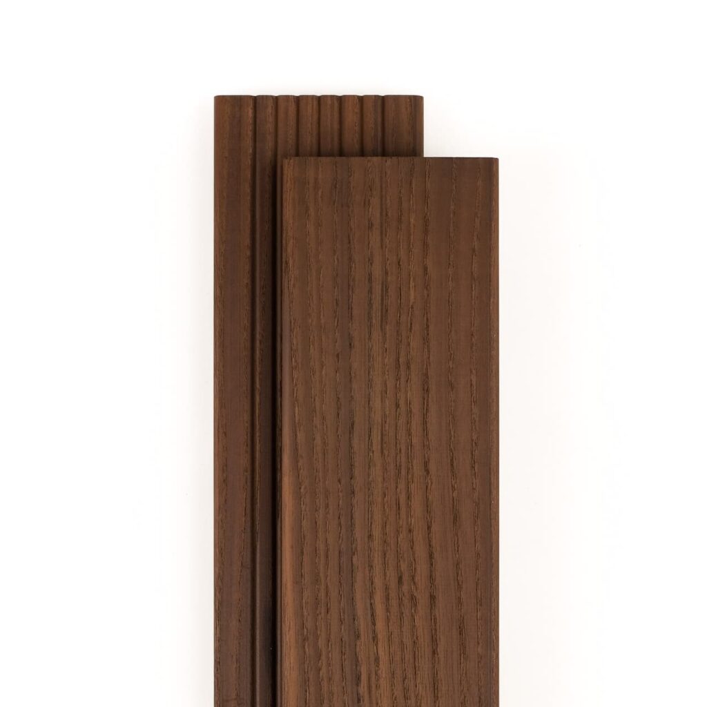 Терасна дошка Bauwood BT-6 з термоясена – ідеальний вибір для створення стильної та функціональної тераси. Виготовлена з високоякісного термоясена, ця терасна дошка вражає своєю довговічністю та стійкістю до атмосферних впливів. Її інноваційна конструкція забезпечує відмінну стійкість до вологи, перепадів температур і ультрафіолетового випромінювання, що робить її ідеальним варіантом для зовнішнього використання.
