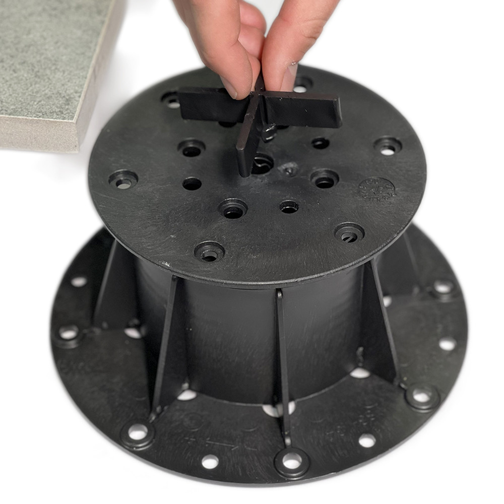 Комплектуючі дозволяють надійно закріпити каркас і зробити настил будь-якої складності на регульованих опорах. Вони допоможуть легко компенсувати кут нахилу поверхні і рівномірно розподілити навантаження.