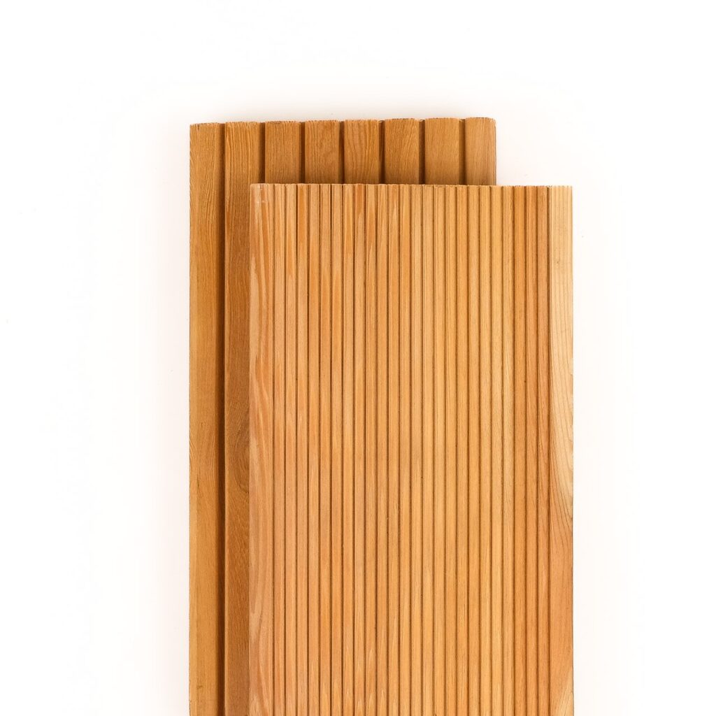Модрина, як матеріал для терасної дошки, відома своєю високою міцністю та стійкістю до зношування. Вона відмінно переносить екстремальні погодні умови, включаючи дощ, сонце та сніг, що робить її ідеальним вибором для екстер’єру будь-якого будинку. Завдяки своїй природній вологості та шарму, модрина надає вашій терасі атмосферу тепла та затишку.
